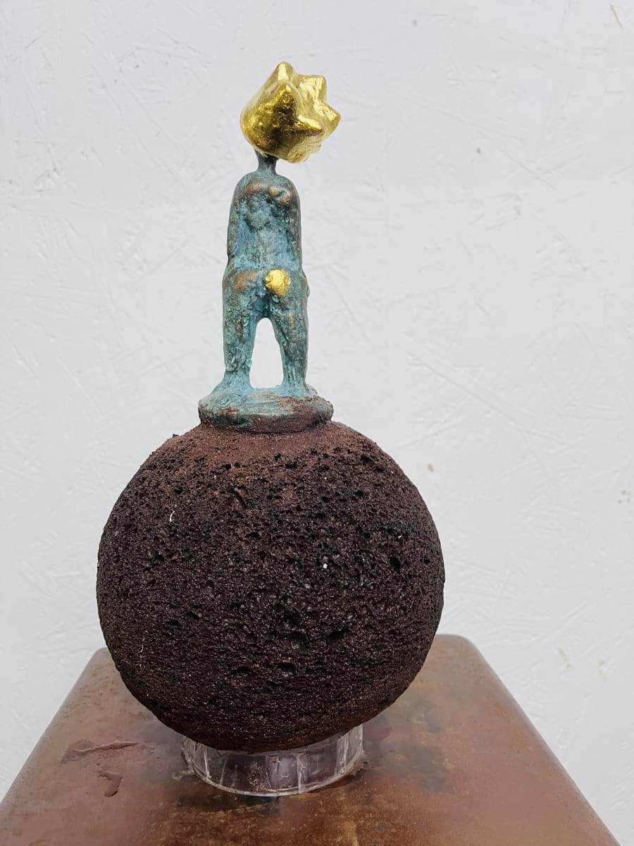 " In meiner Welt " Bronze,Stahl, Lava, vergoldet